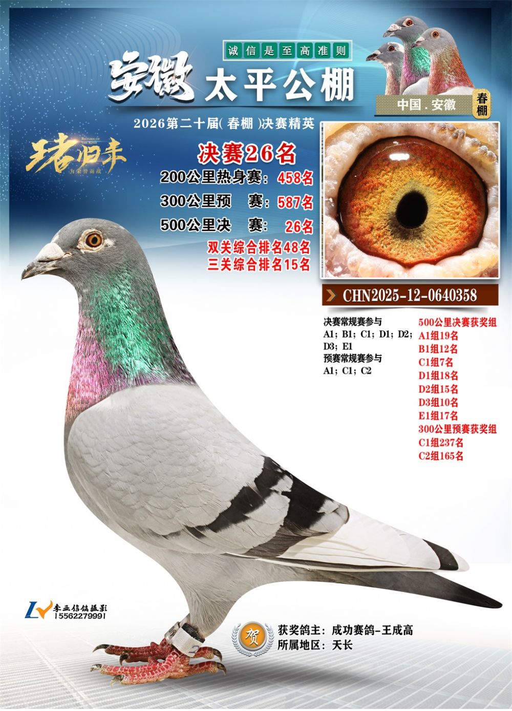 - 鸽主姓名:成功赛鸽-王成高