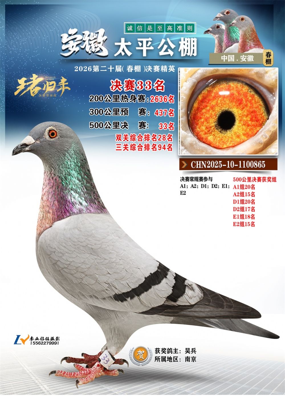 - 鸽主姓名:吴兵