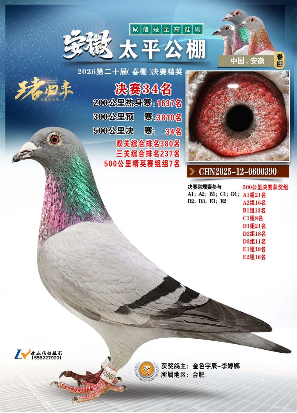 - 鸽主姓名:金色宇辰-李婷娜