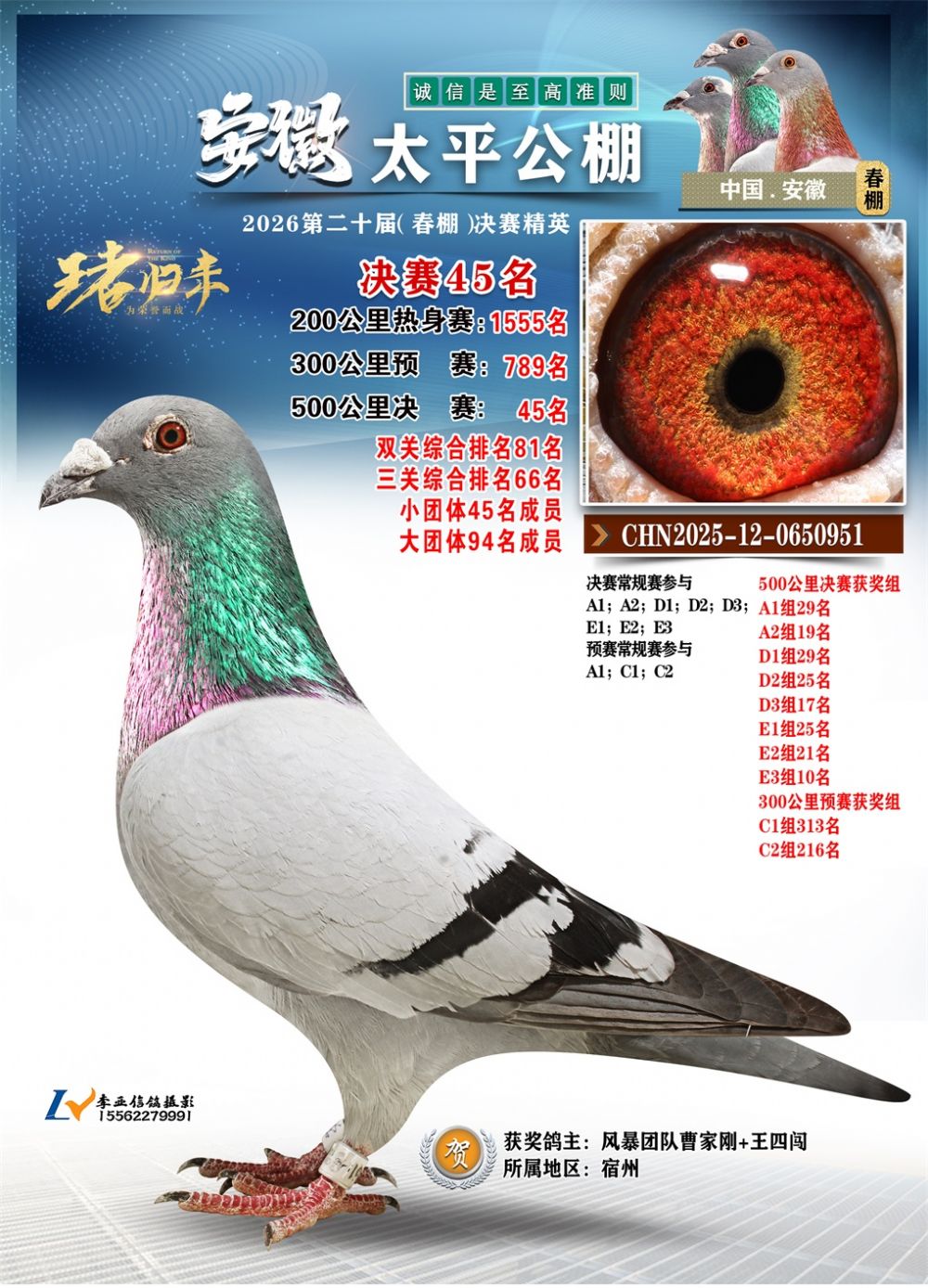- 鸽主姓名:风暴团队曹家刚+王四闯