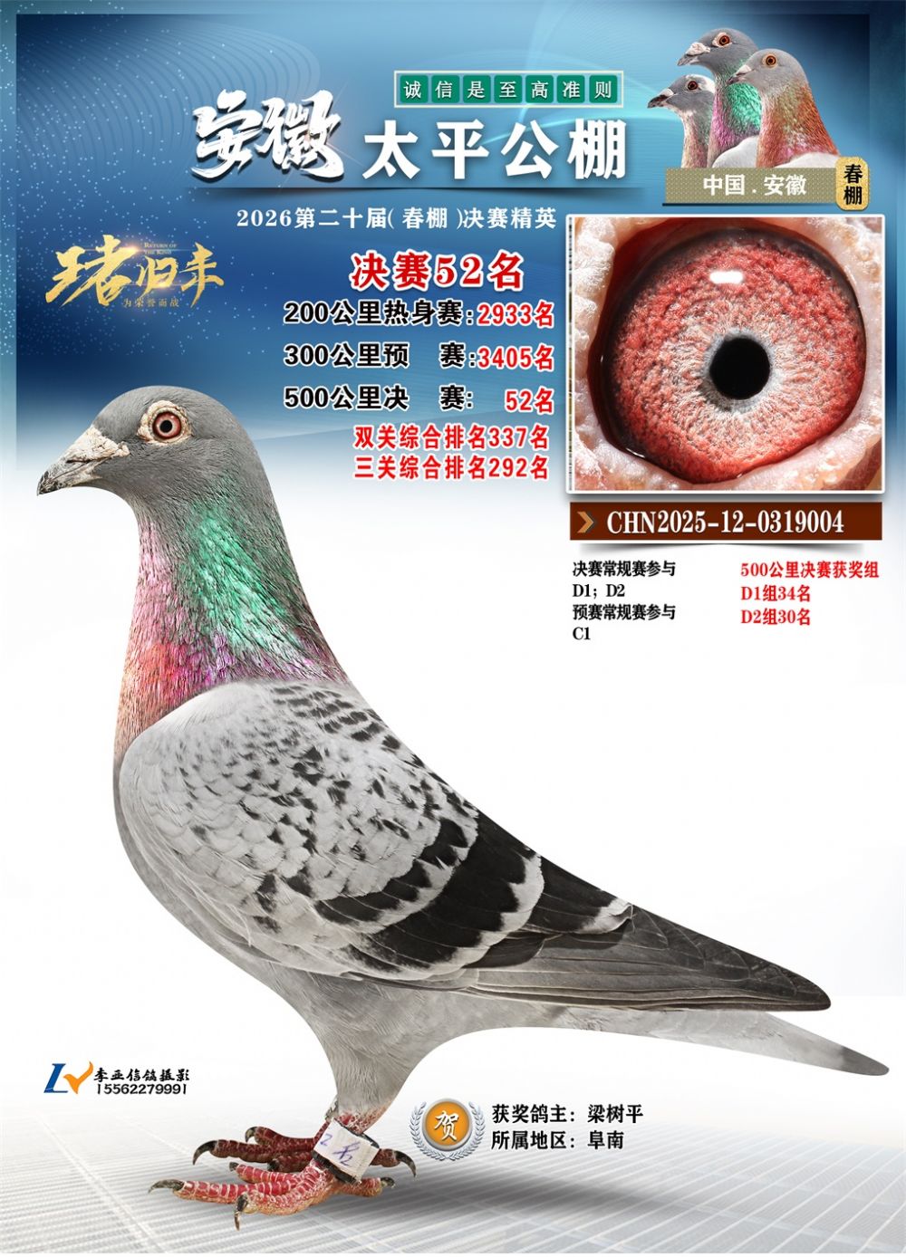 - 鸽主姓名:梁树平