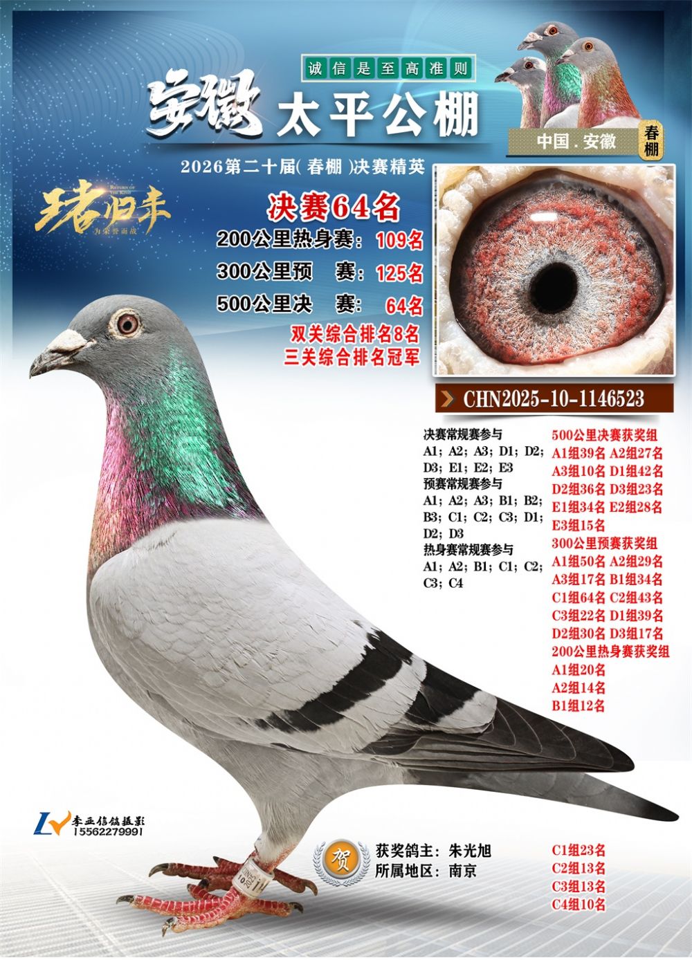- 鸽主姓名:朱光旭