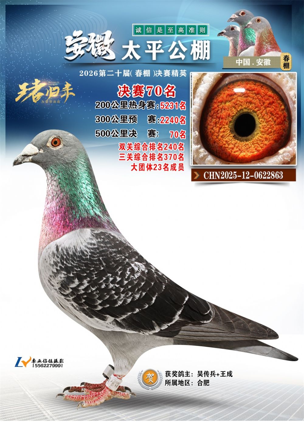 - 鸽主姓名:吴传兵+王成
