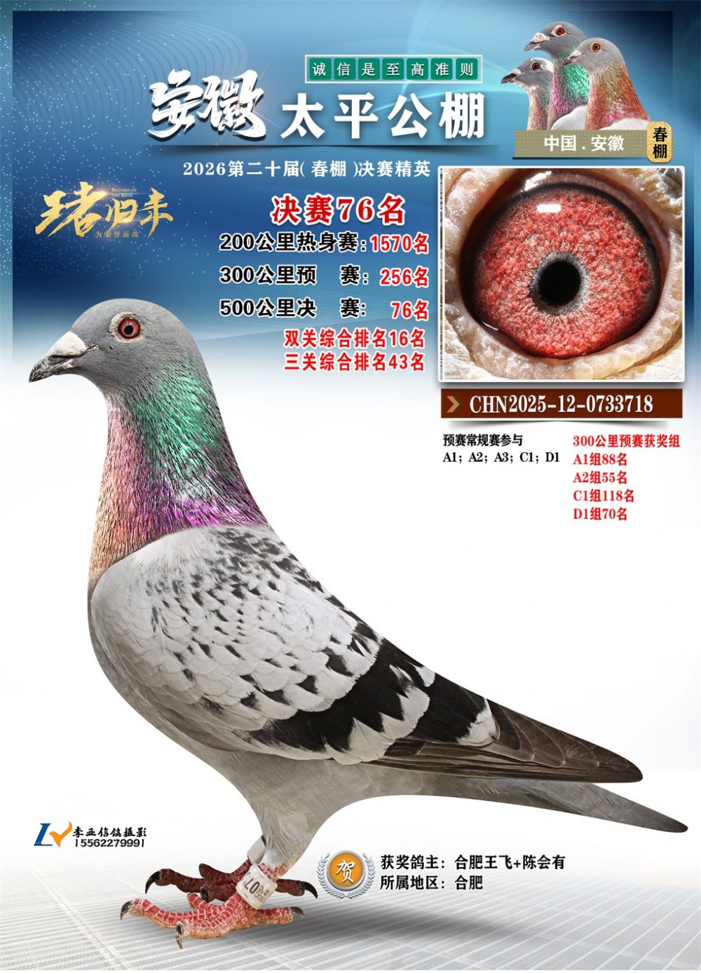 - 鸽主姓名:合肥王飞+陈会有