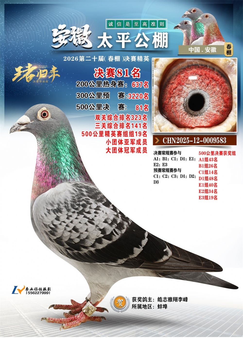 - 鸽主姓名:皓志雅翔李峰