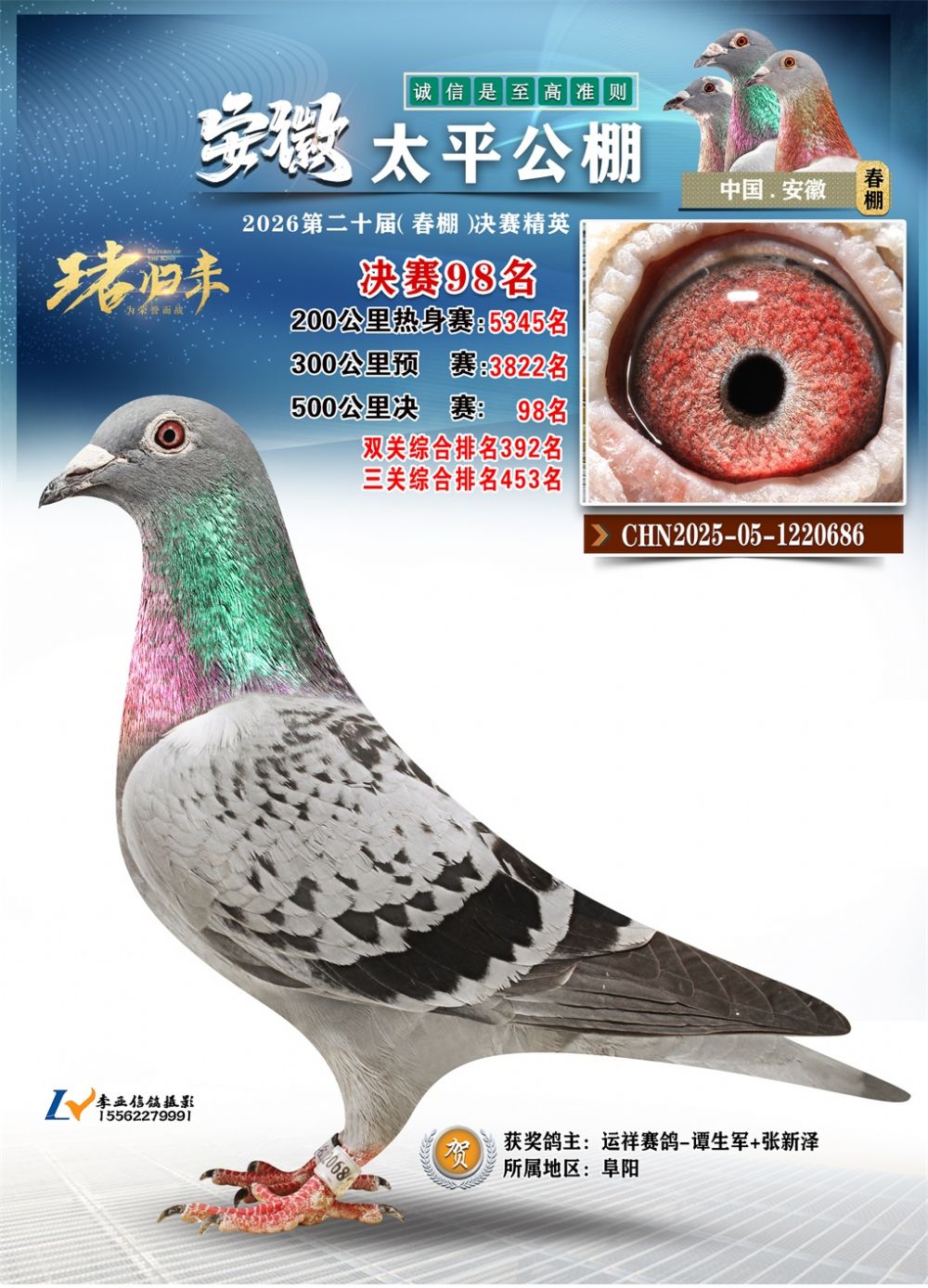 - 鸽主姓名:运祥赛鸽-谭生军+张新泽