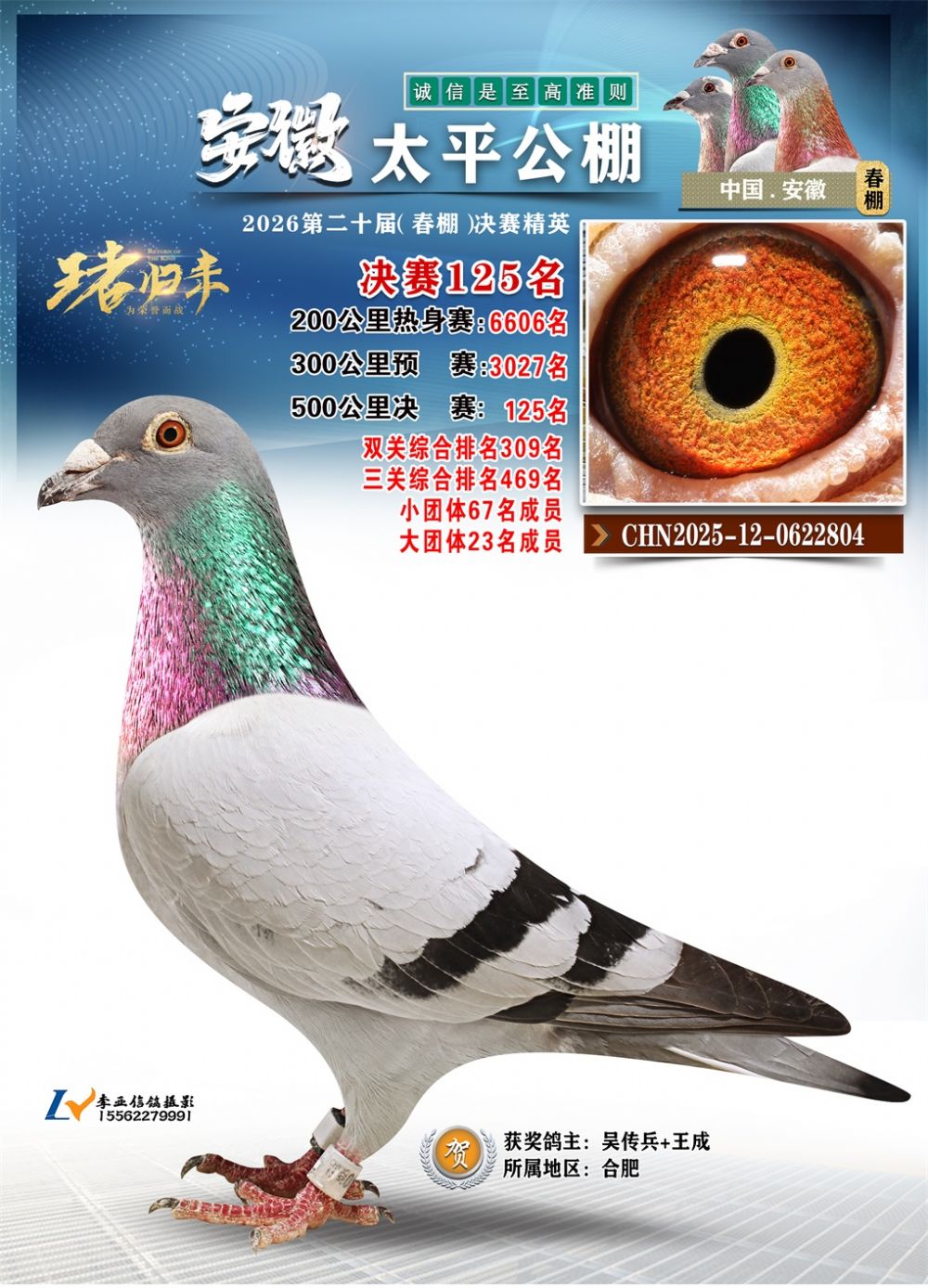 - 鸽主姓名:吴传兵+王成