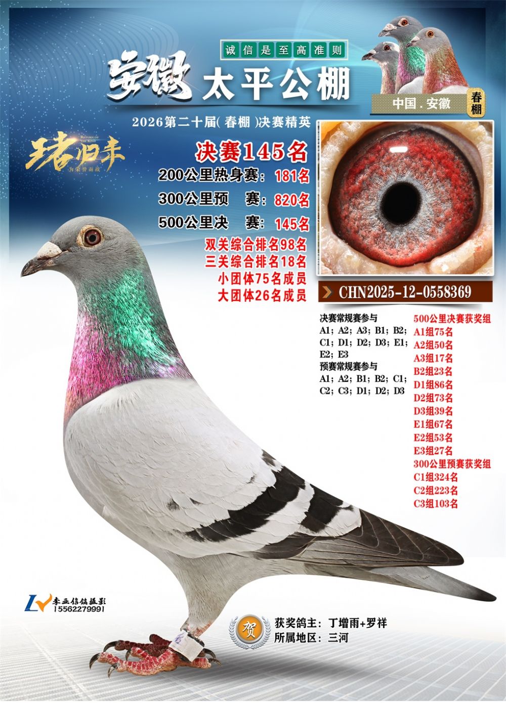 - 鸽主姓名:丁增雨+罗祥