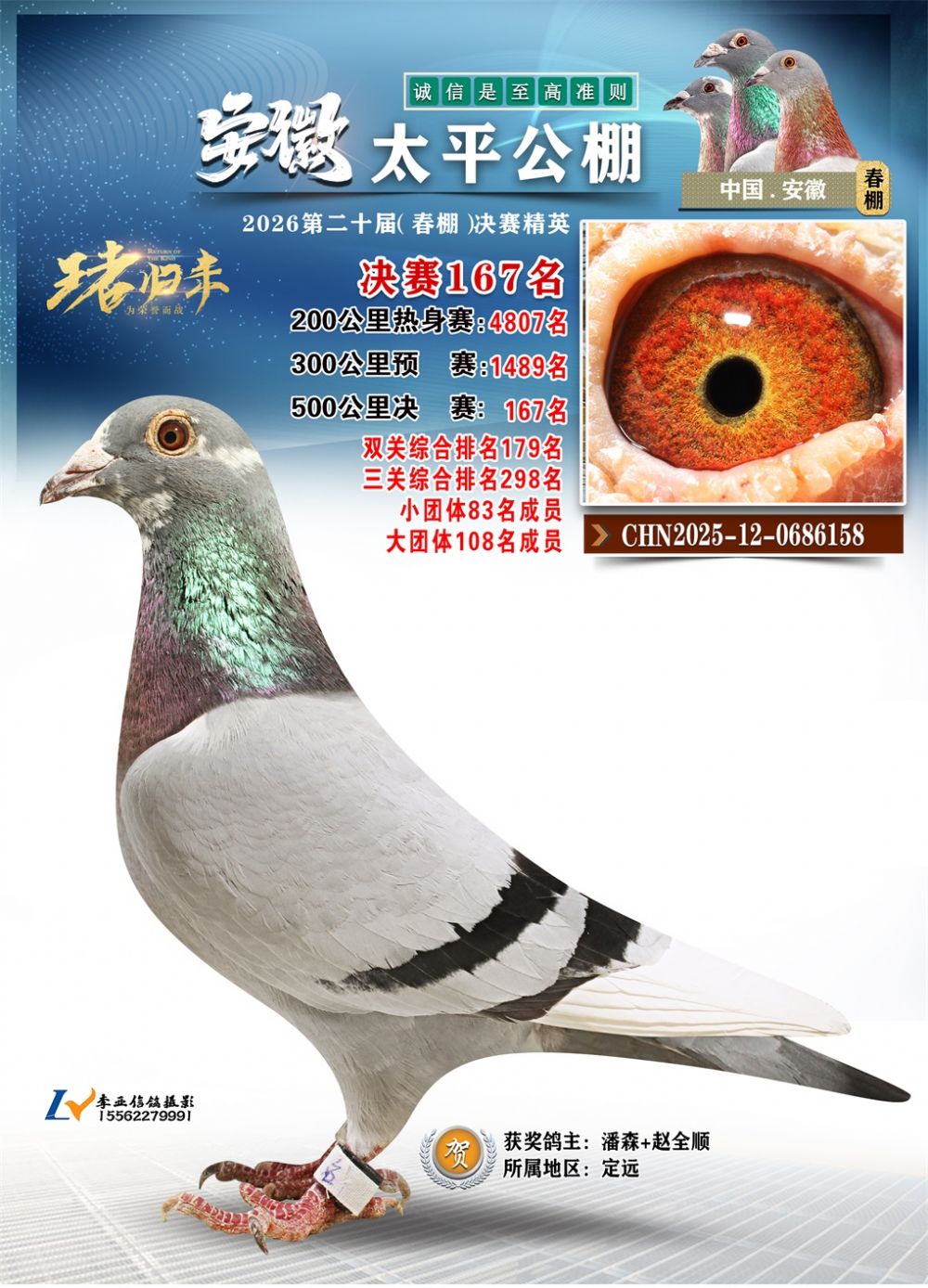 - 鸽主姓名:潘森+赵全顺