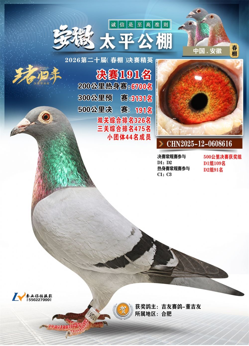 - 鸽主姓名:吉友赛鸽-董吉友