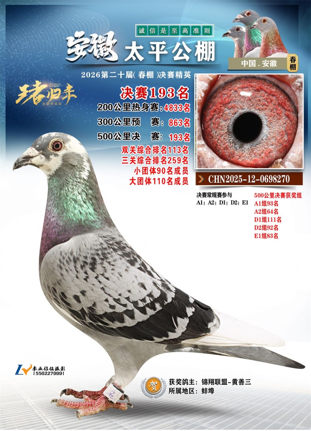 - 鸽主姓名:锦翔联盟-黄善三