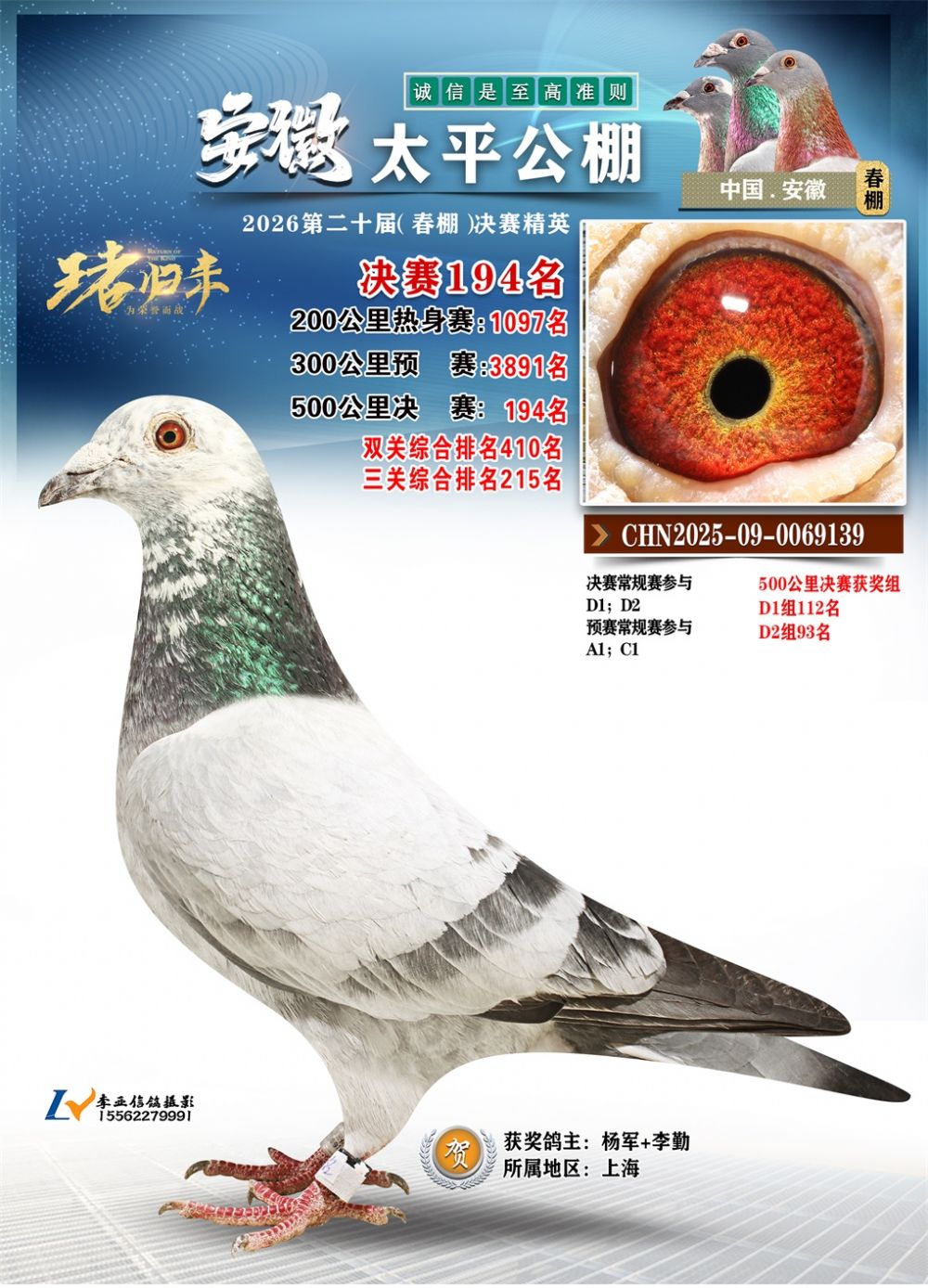 - 鸽主姓名:杨军+李勤