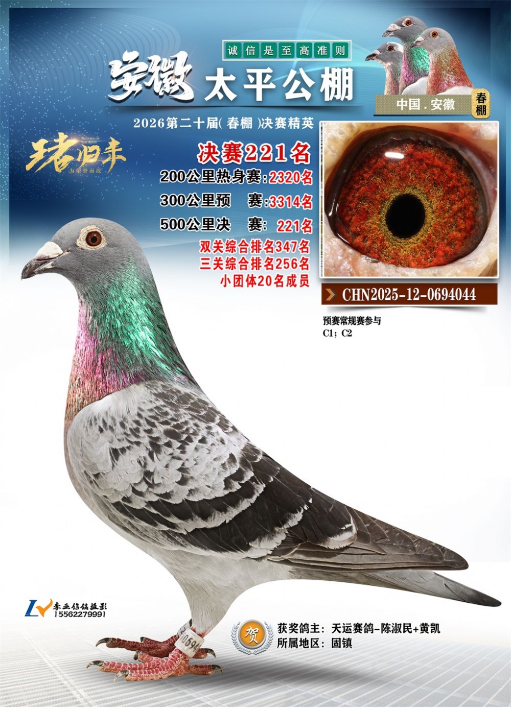 - 鸽主姓名:天运赛鸽-陈淑民+黄凯