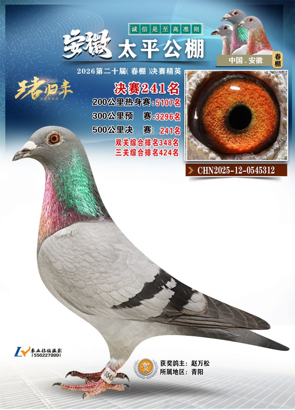 - 鸽主姓名:赵万松