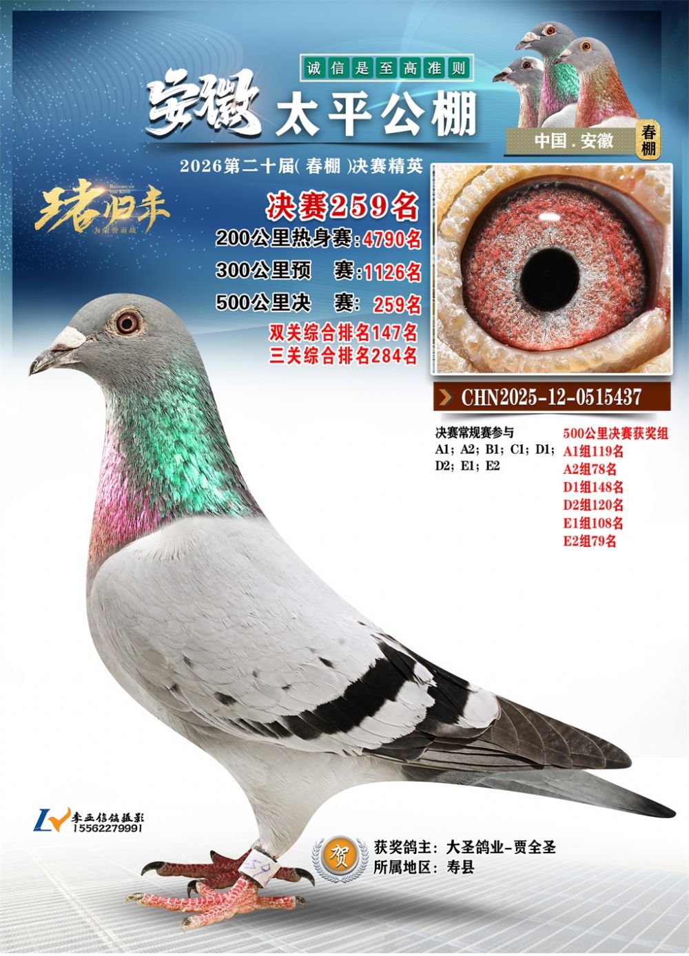 - 当前查看的拍卖鸽:安徽太平决赛259名