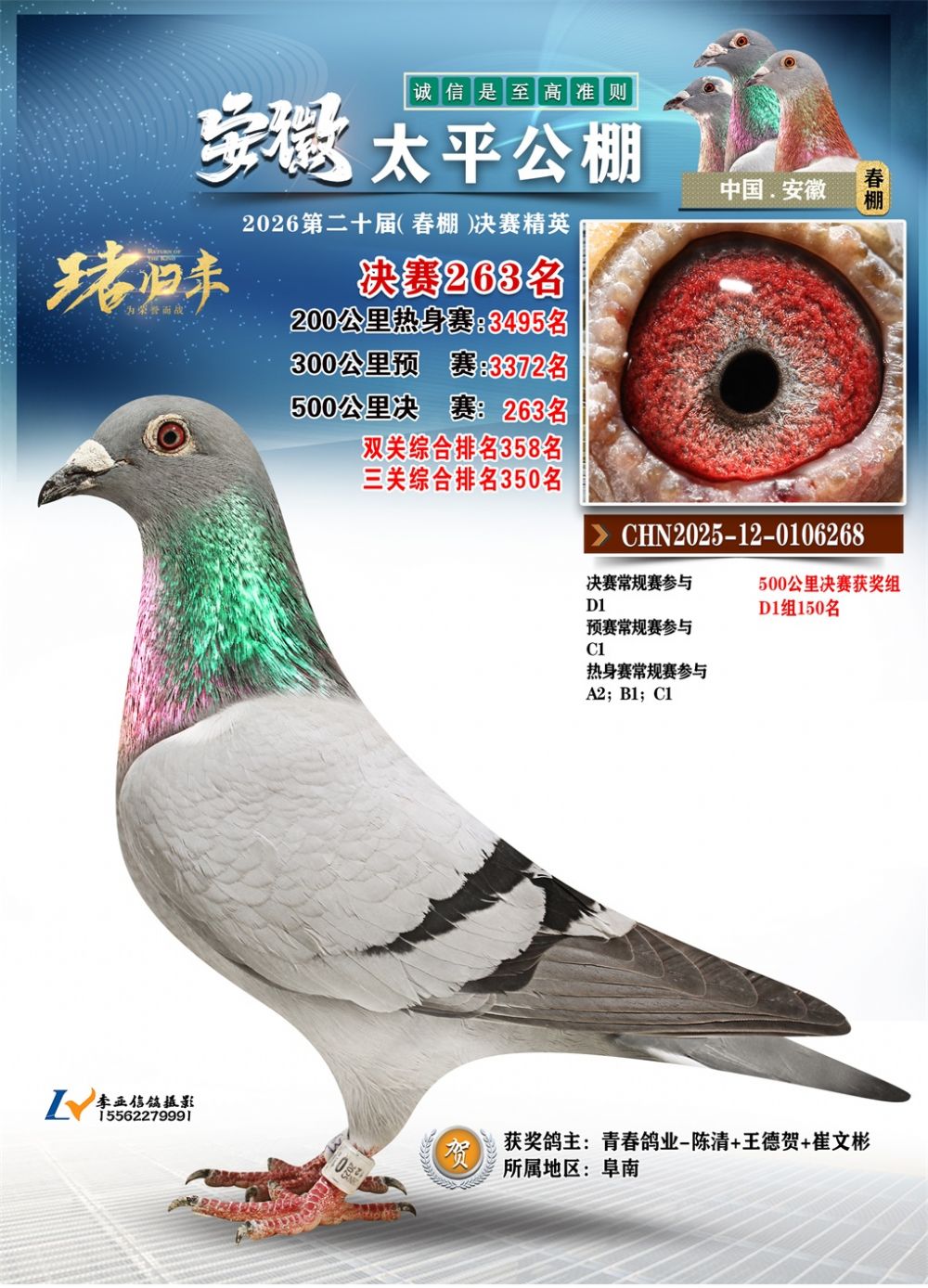 - 鸽主姓名:青春鸽业-陈清+王德贺+崔文彬