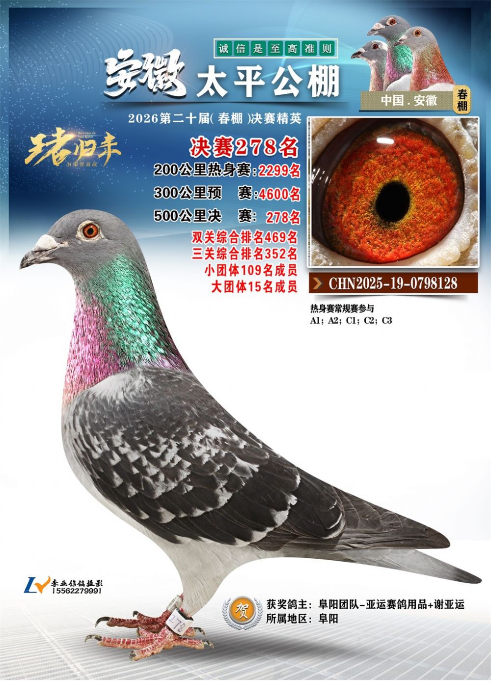 - 鸽主姓名:阜阳团队-亚运赛鸽用品+谢亚运