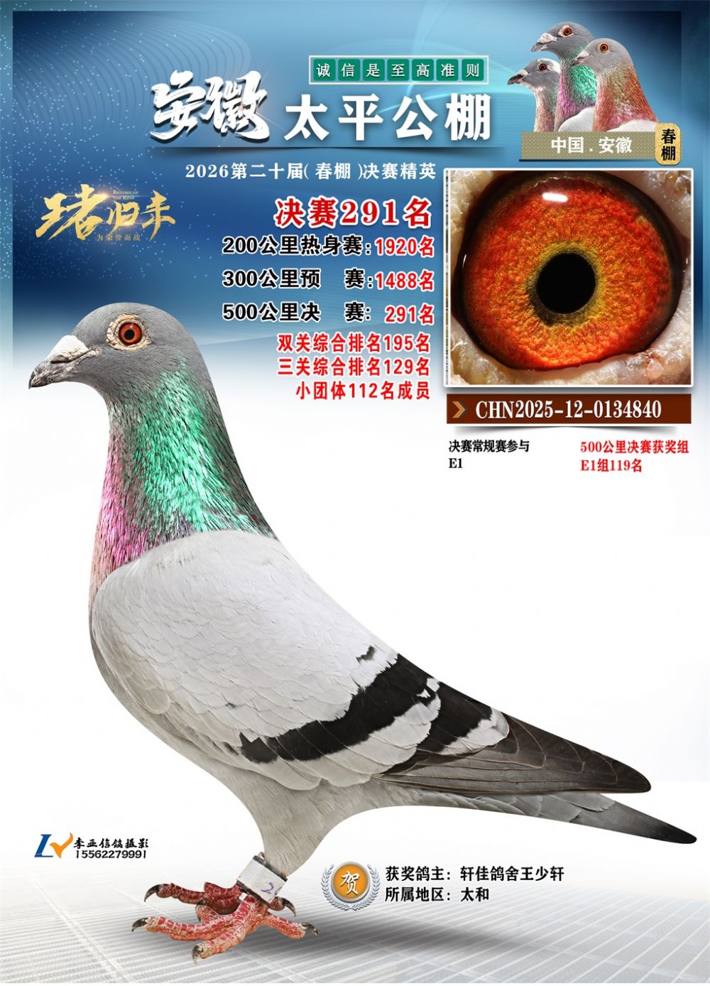 - 当前查看的拍卖鸽:安徽太平决赛291名