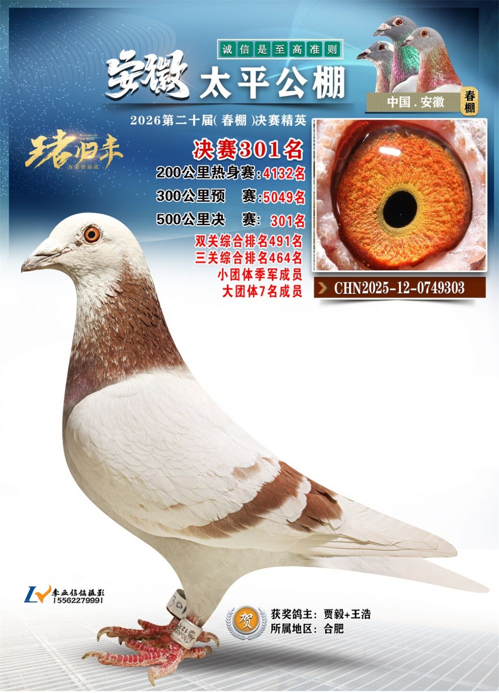 - 当前查看的拍卖鸽:安徽太平决赛301名