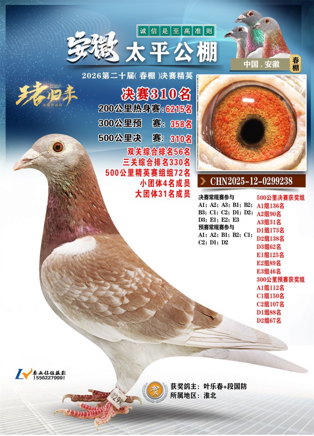 - 鸽主姓名:叶乐春+段国防