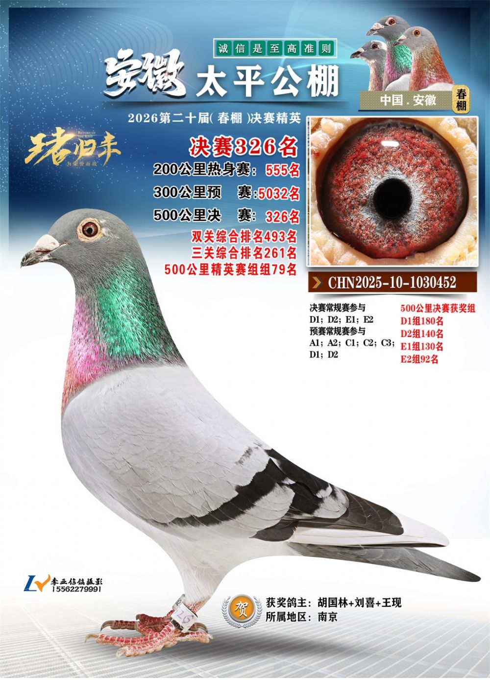 - 鸽主姓名:胡国林+刘喜+王现