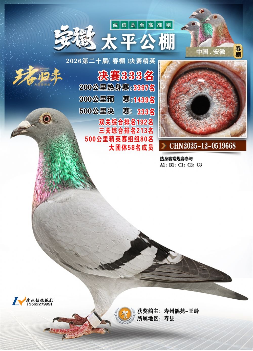 - 鸽主姓名:寿州鸽苑-王岭