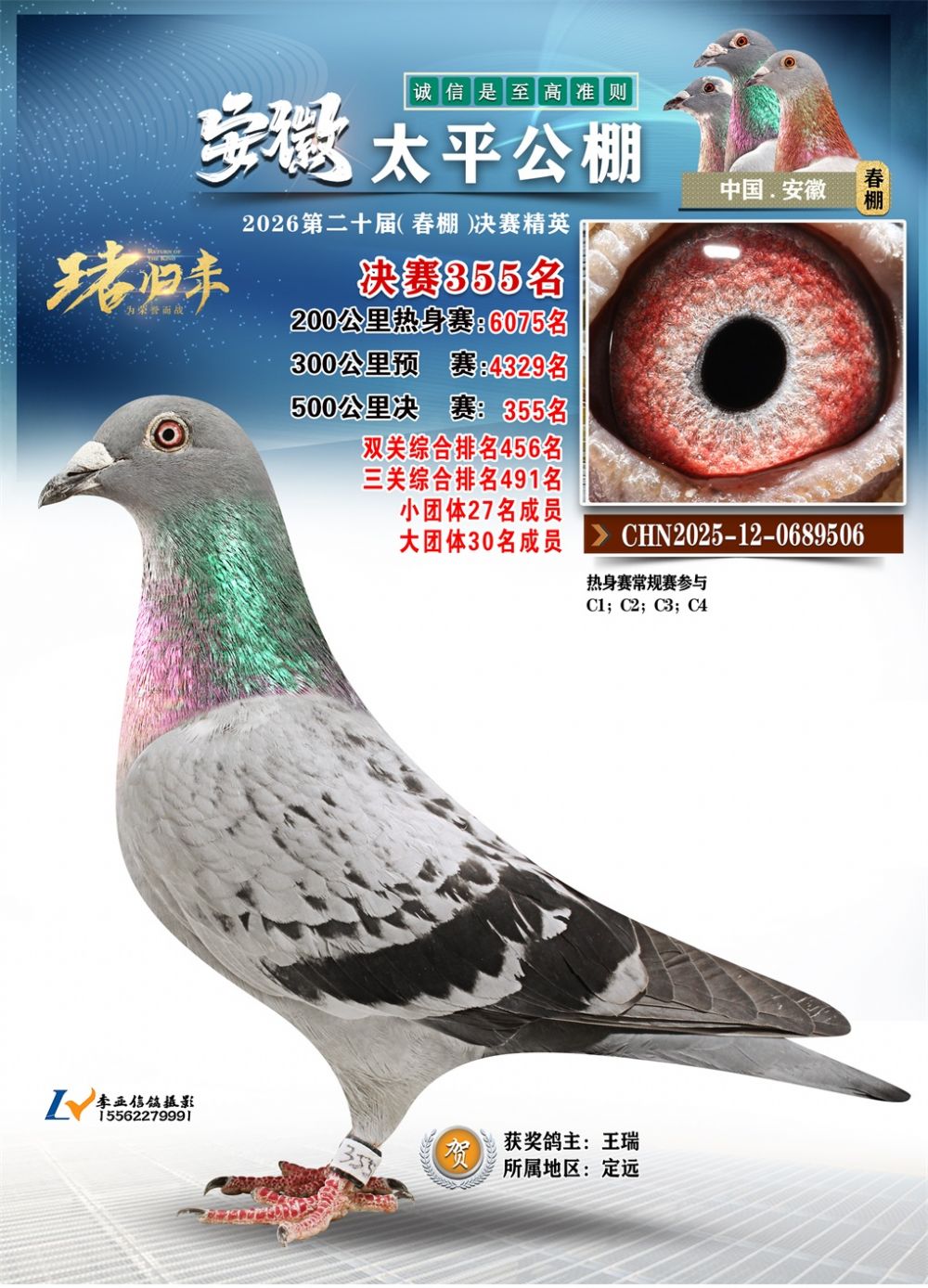 - 鸽主姓名:王瑞