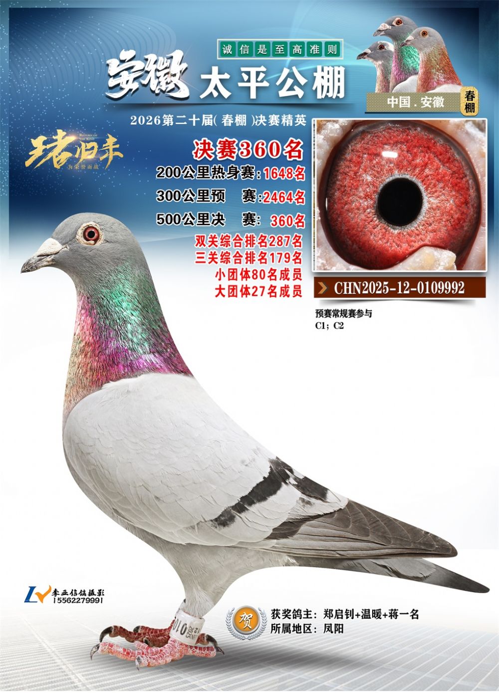 - 鸽主姓名:郑启钊+温暖+蒋一名