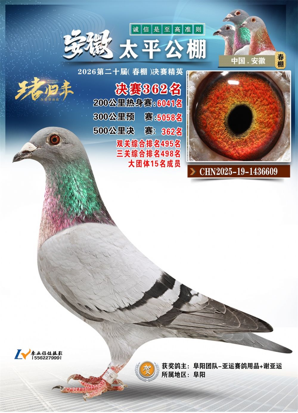 - 鸽主姓名:阜阳团队-亚运赛鸽用品+谢亚运