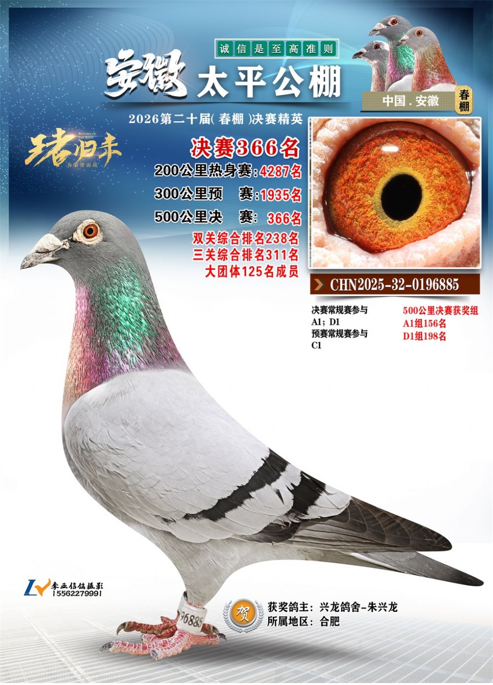 - 鸽主姓名:兴龙鸽舍-朱兴龙