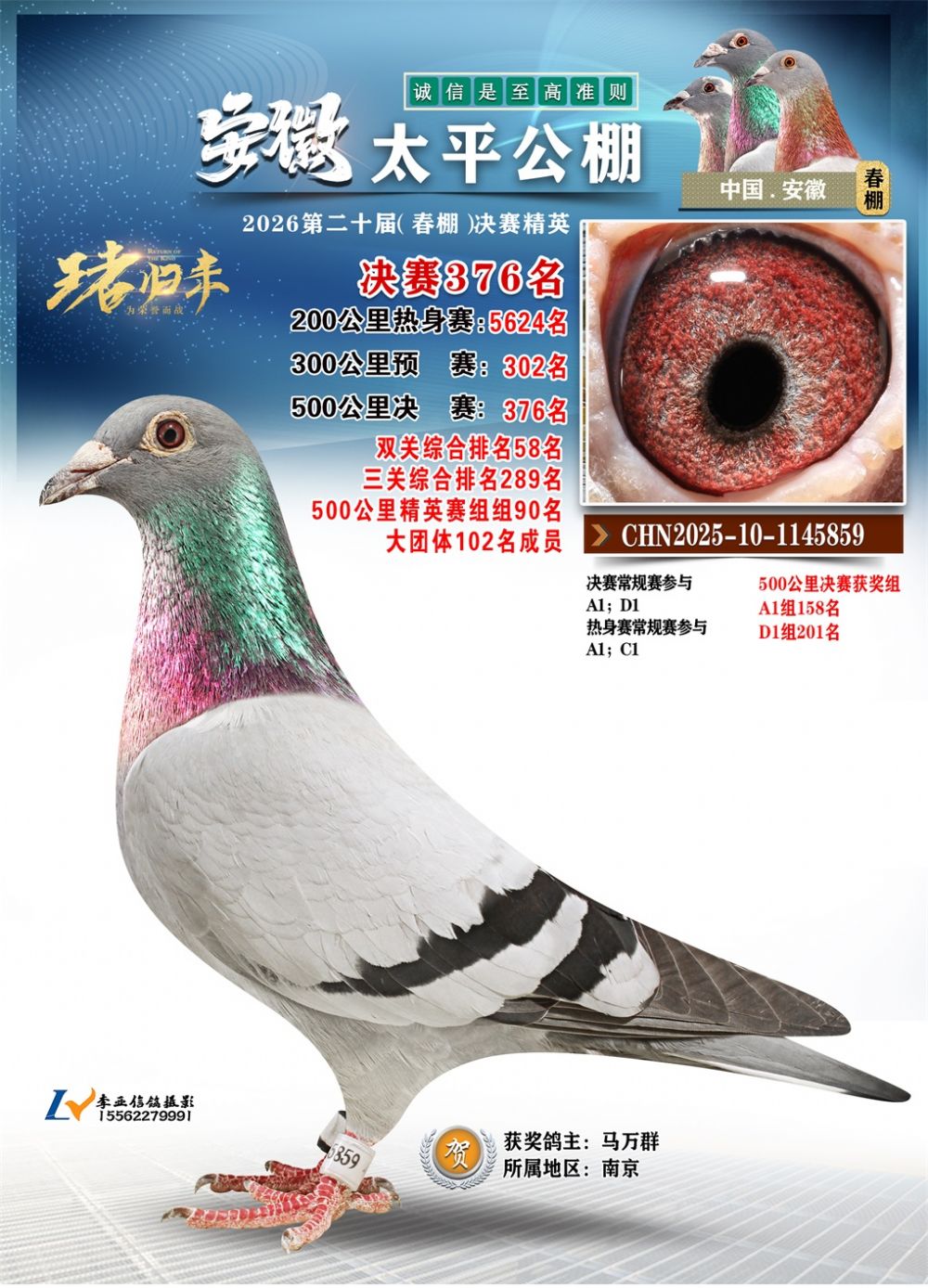 - 鸽主姓名:马万群