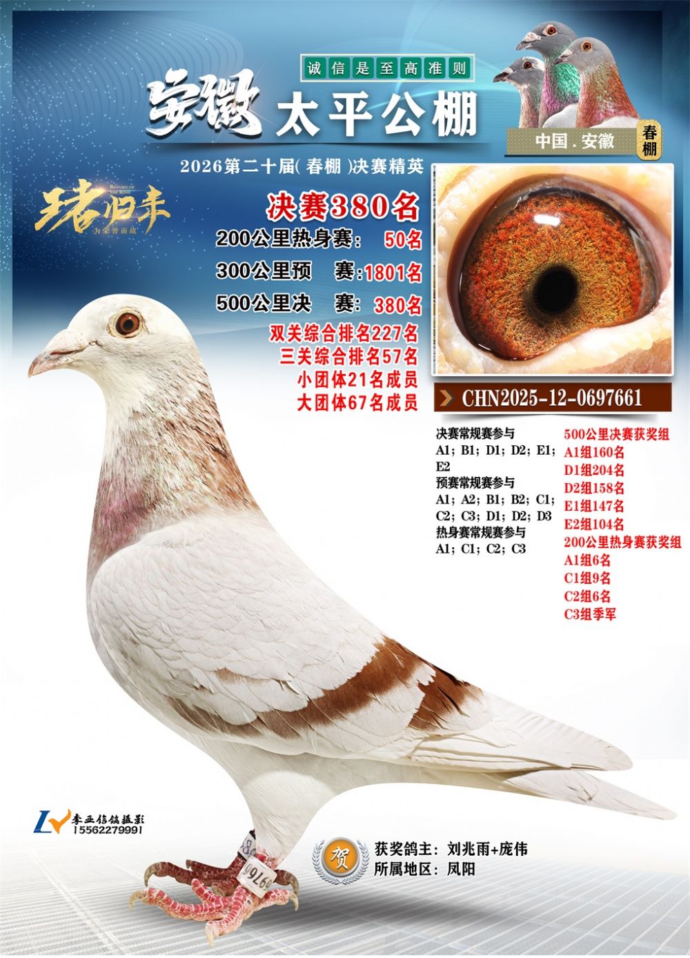 - 鸽主姓名:刘兆雨+庞伟