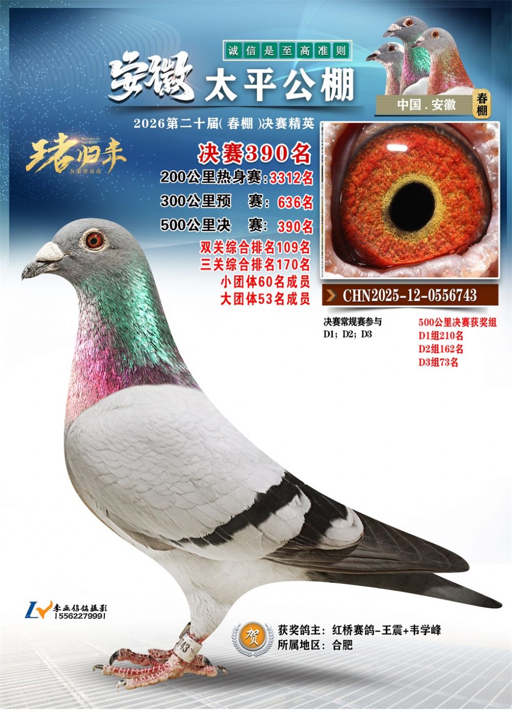 - 鸽主姓名:红桥赛鸽-王震+韦学峰