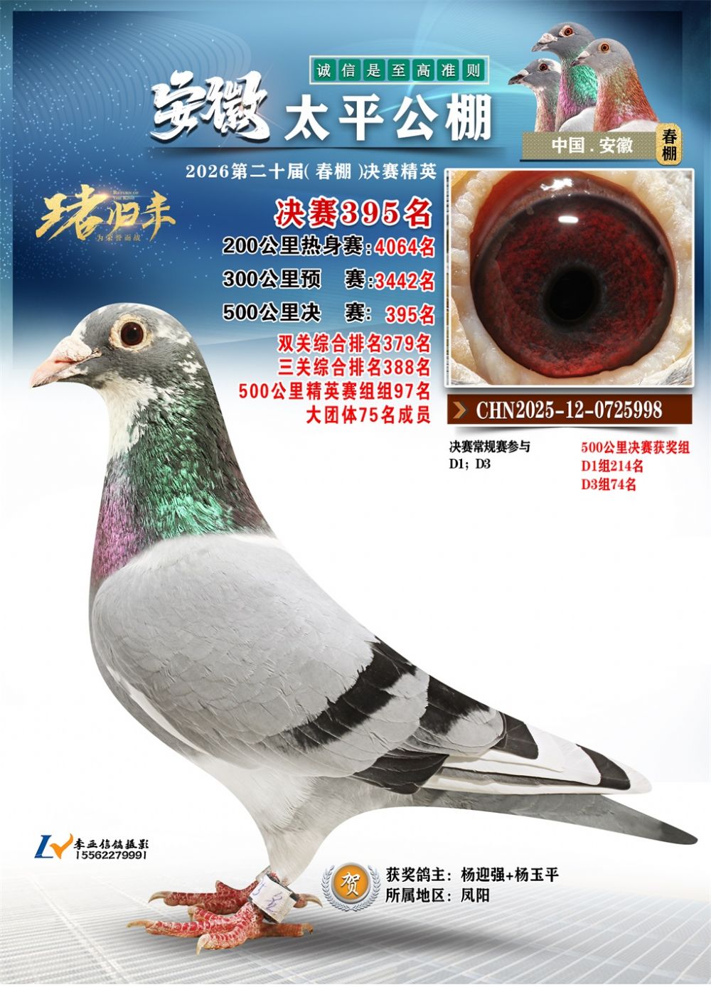 - 鸽主姓名:杨迎强+杨玉平