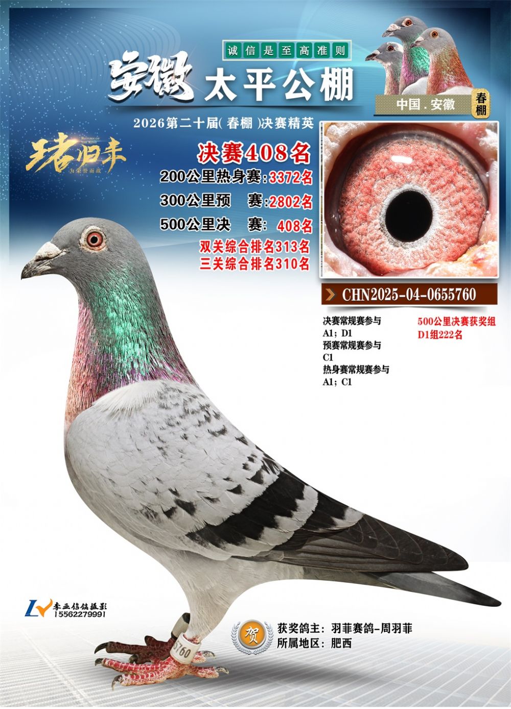 - 鸽主姓名:羽菲赛鸽-周羽菲
