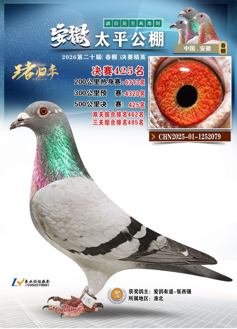 - 鸽主姓名:爱鸽有道-张西强