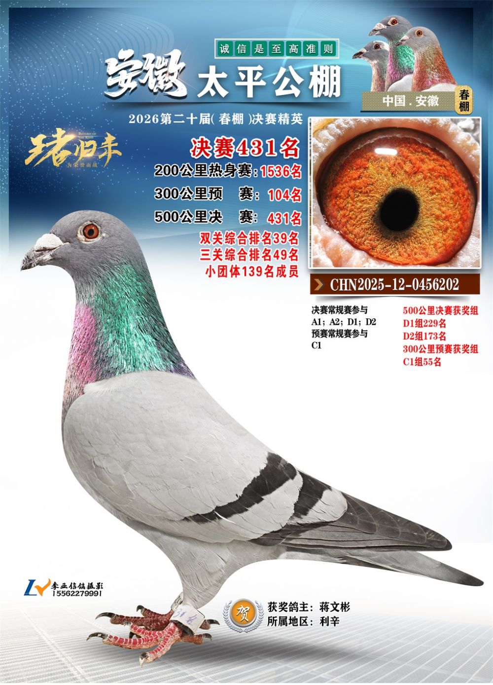 - 鸽主姓名:蒋文彬