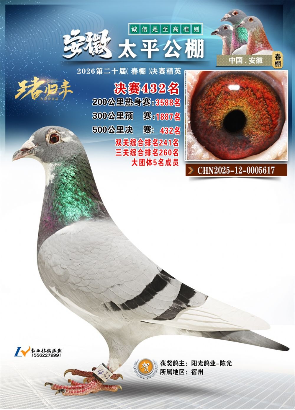 - 鸽主姓名:阳光鸽业-陈光