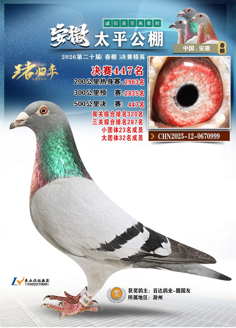 - 鸽主姓名:百达鸽业-路国友
