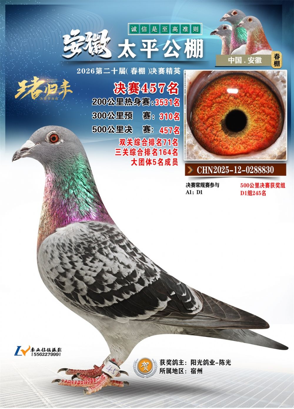 - 鸽主姓名:阳光鸽业-陈光