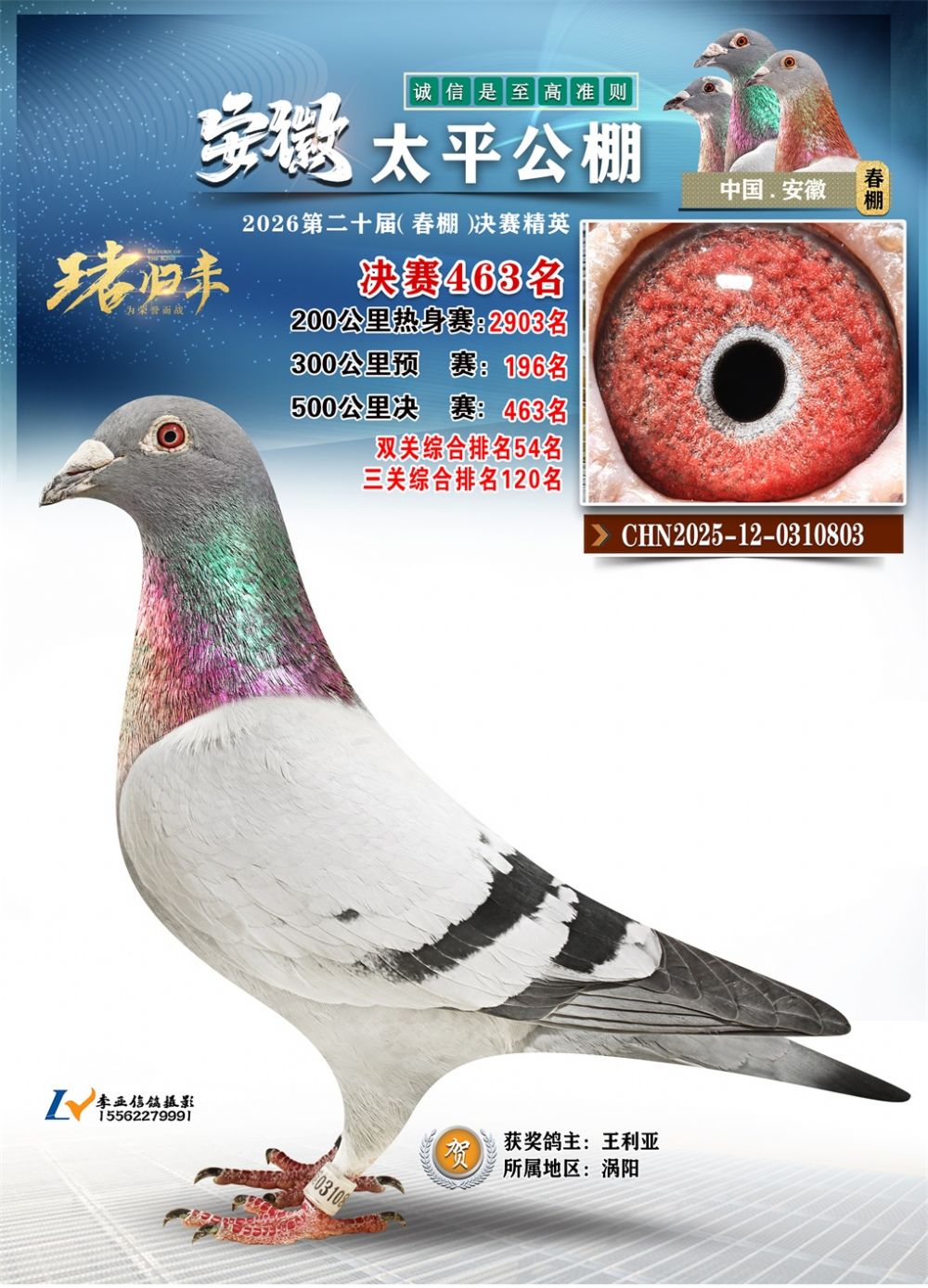 - 鸽主姓名:王利亚