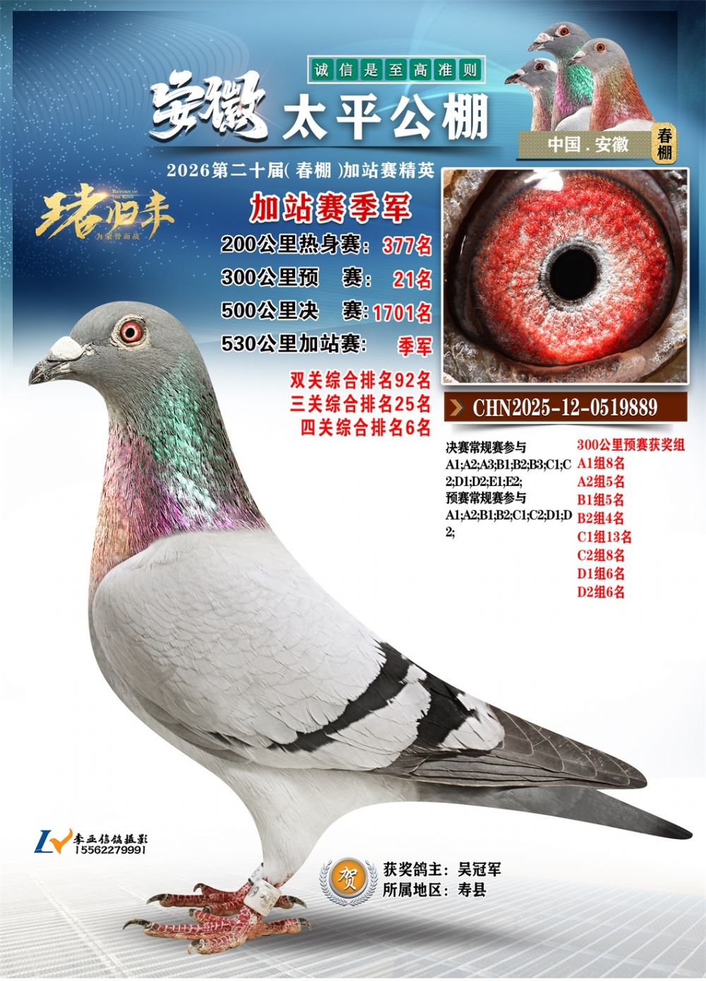 - 当前查看的拍卖鸽:安徽太平加站赛季军