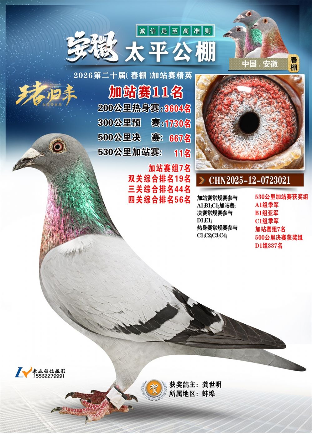 - 当前查看的拍卖鸽:安徽太平加站赛11名