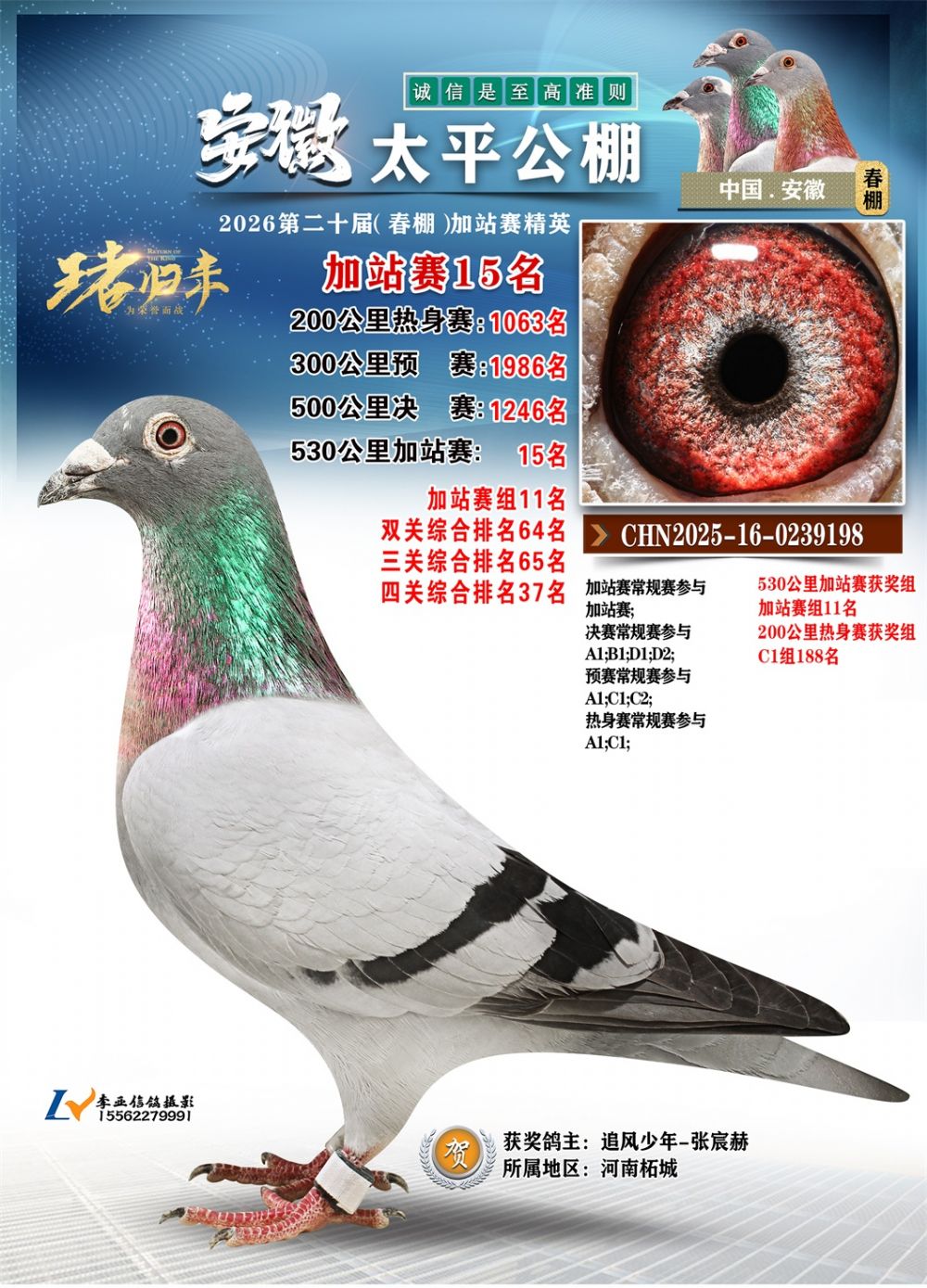 - 当前查看的拍卖鸽:安徽太平加站赛15名