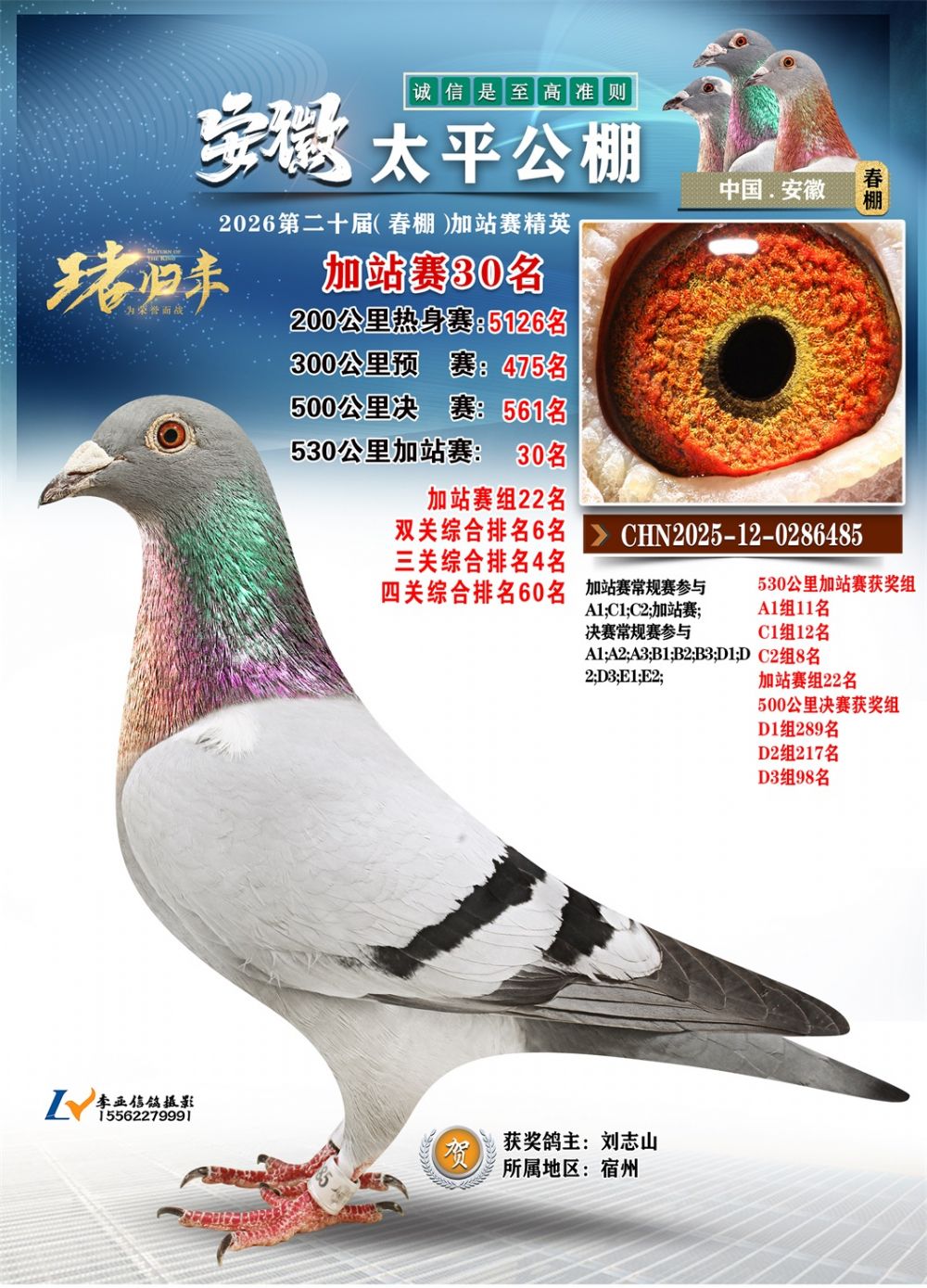 - 鸽主姓名:刘志山