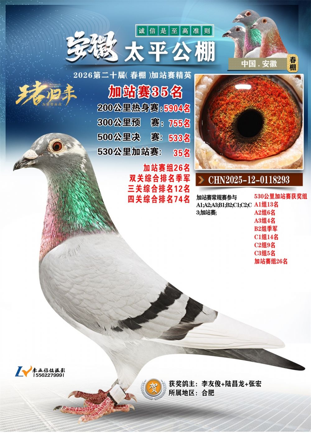 - 鸽主姓名:李友俊+陆昌龙+张宏