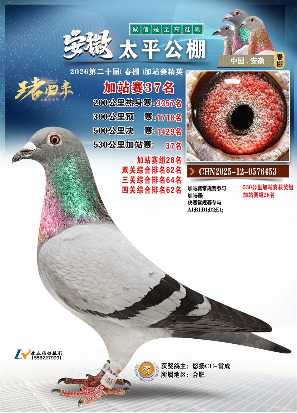 - 鸽主姓名:悠扬CC-常成