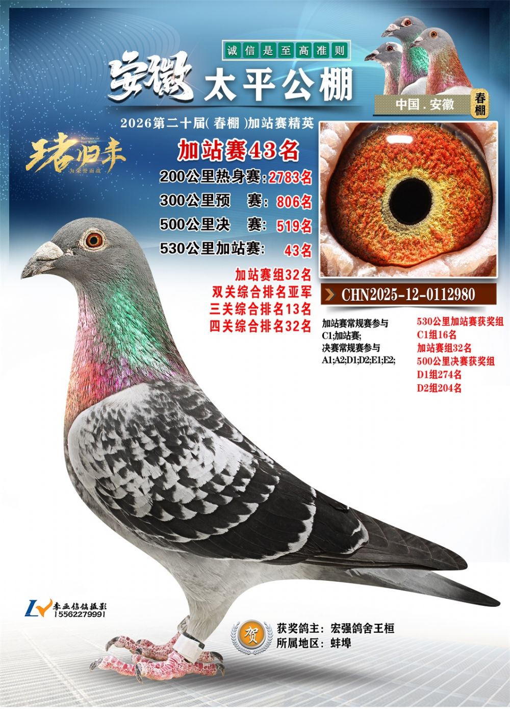 - 鸽主姓名:宏强鸽舍王桓