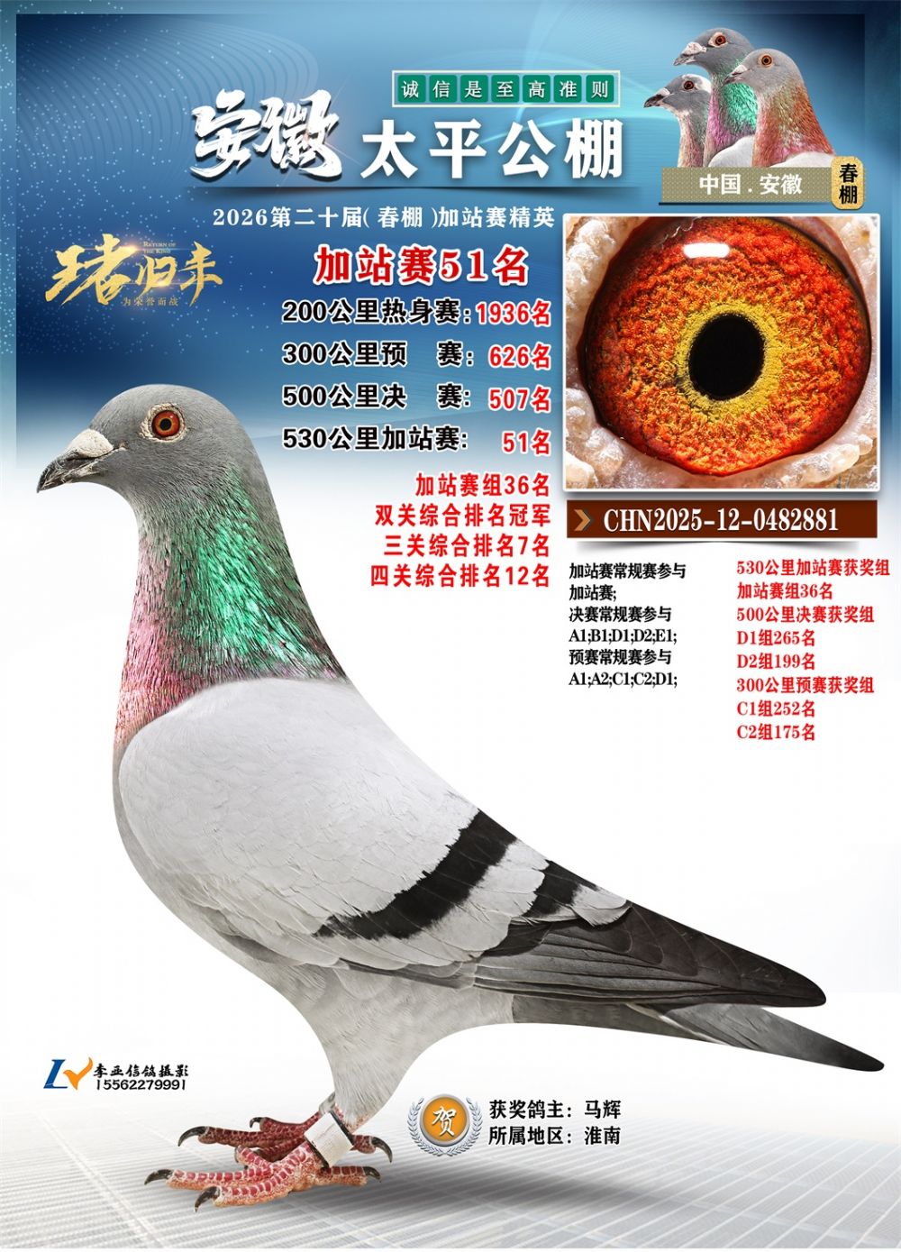 - 鸽主姓名:马辉