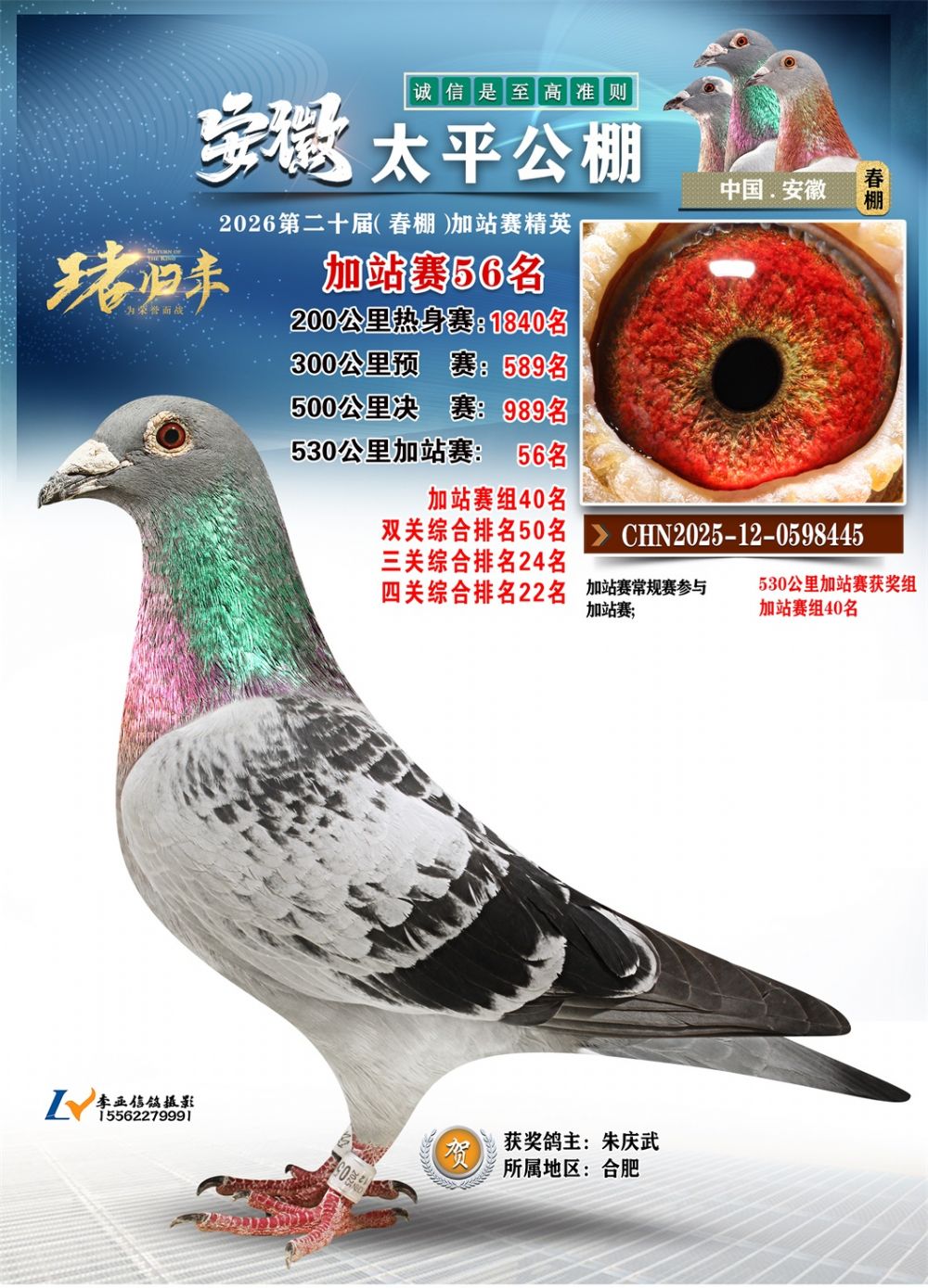 - 当前查看的拍卖鸽:安徽太平加站赛56名